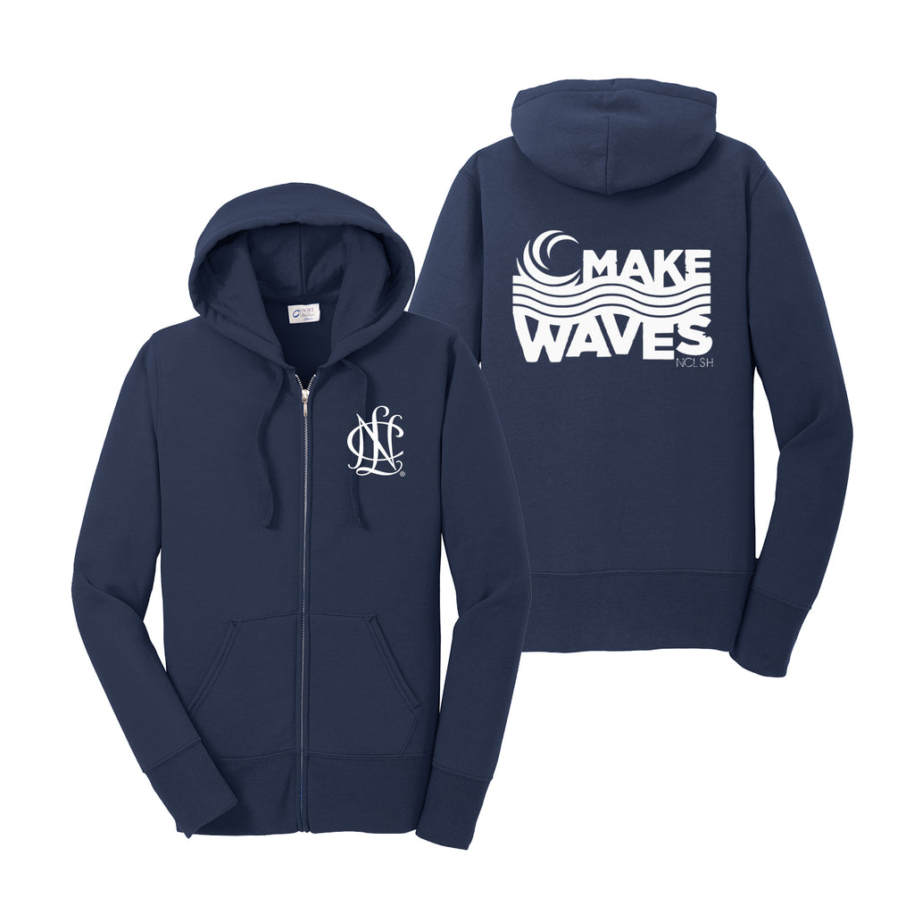 NCL Full Zip Hooded Sweatshirt with MAKE WAVES Logo on Back - Stanford Hills
