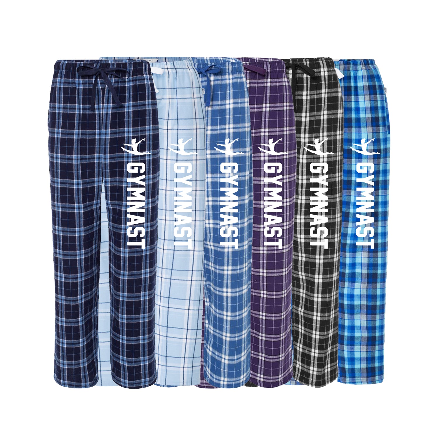 Gymnast Flannel Pants - Unisex Sizing - Loungewear is always in season! From lazy weekends in to relaxing after work or school, our Harley Flannel Pant is the one you'll reach for time after time. Available in a variety of colors and printed with the Gymnast and the icon down the leg in white print. These pants will keep you warm and comfortable with double-brushed cotton softness. Neatly finished with a self-folded waistband (with inner drawcord), hidden button-close fly, and yes, they have pockets!