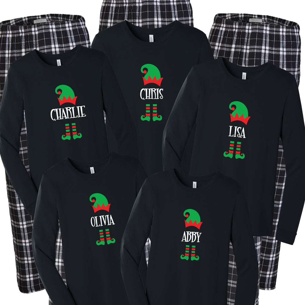 Personalized Elf Matching Family Pajamas - Black/White Plaid