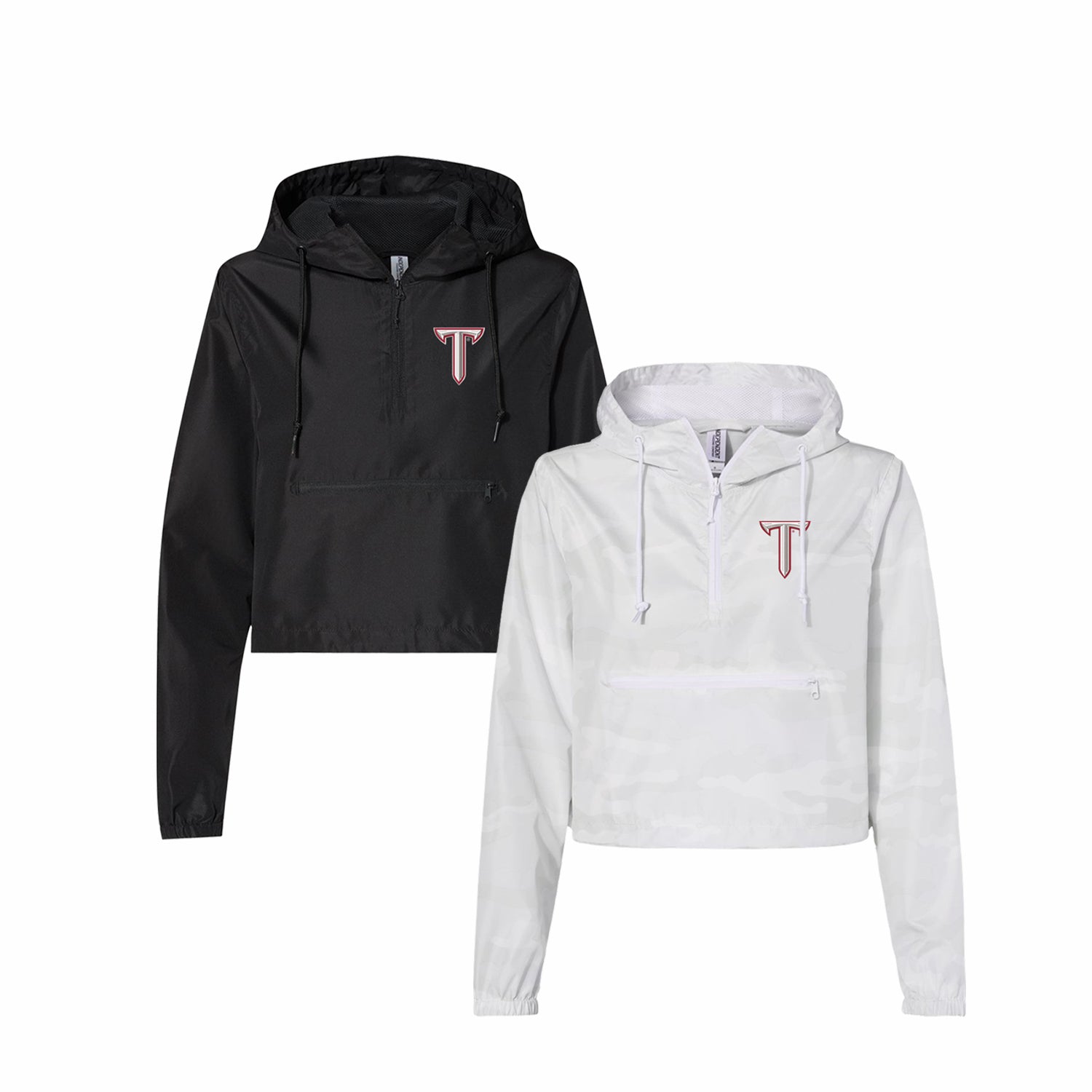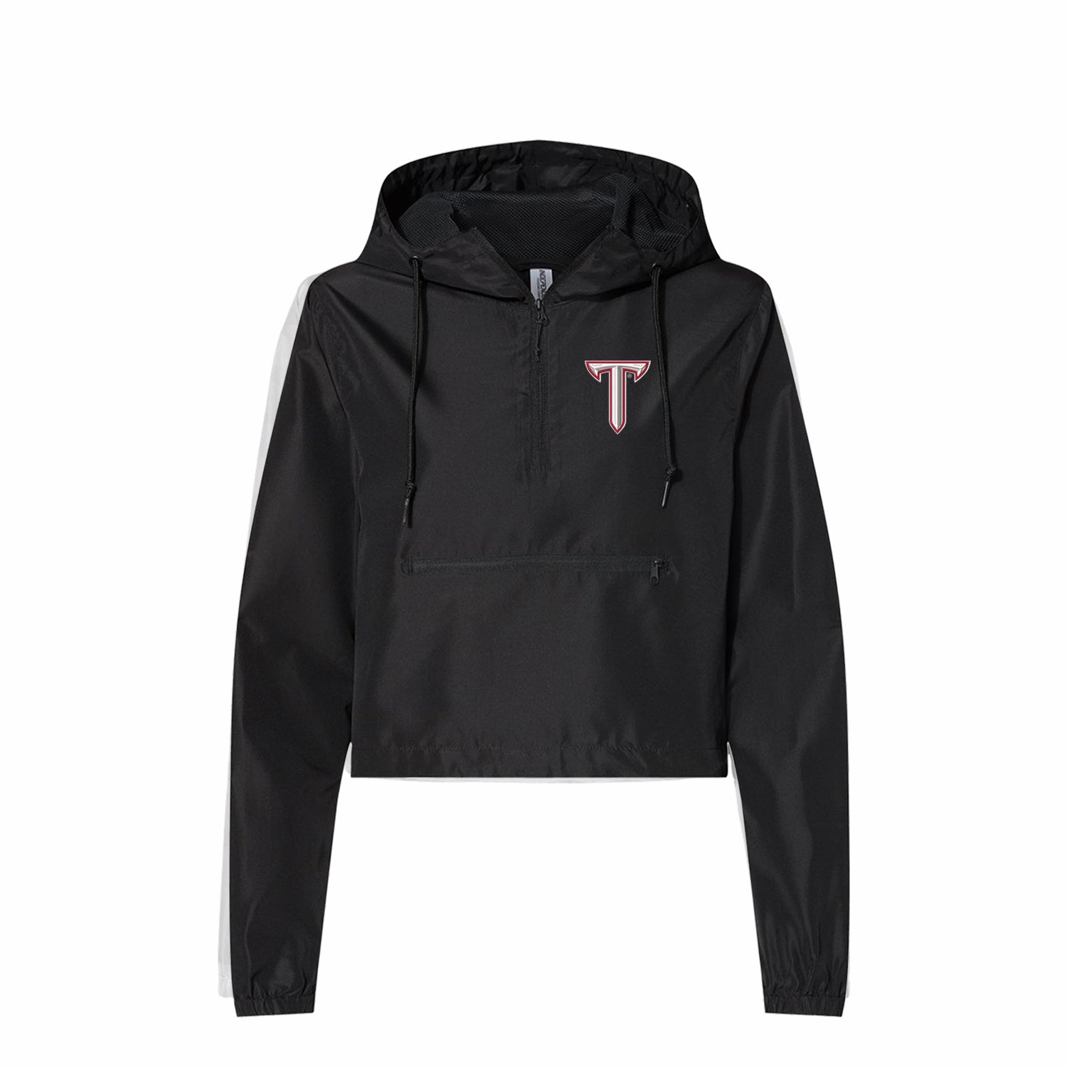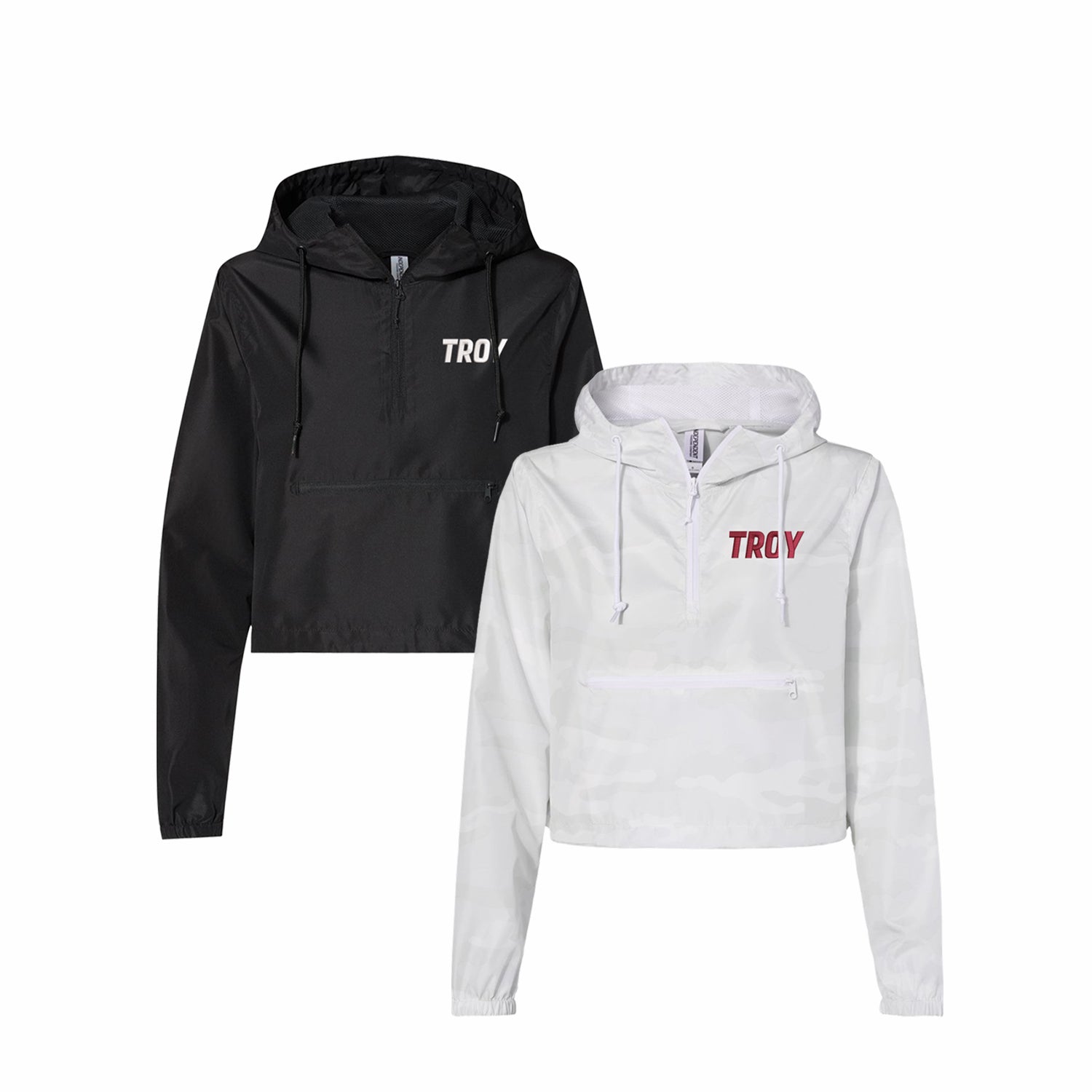 Cropped length Windbreaker embroidered with choice of Troy University Logos.