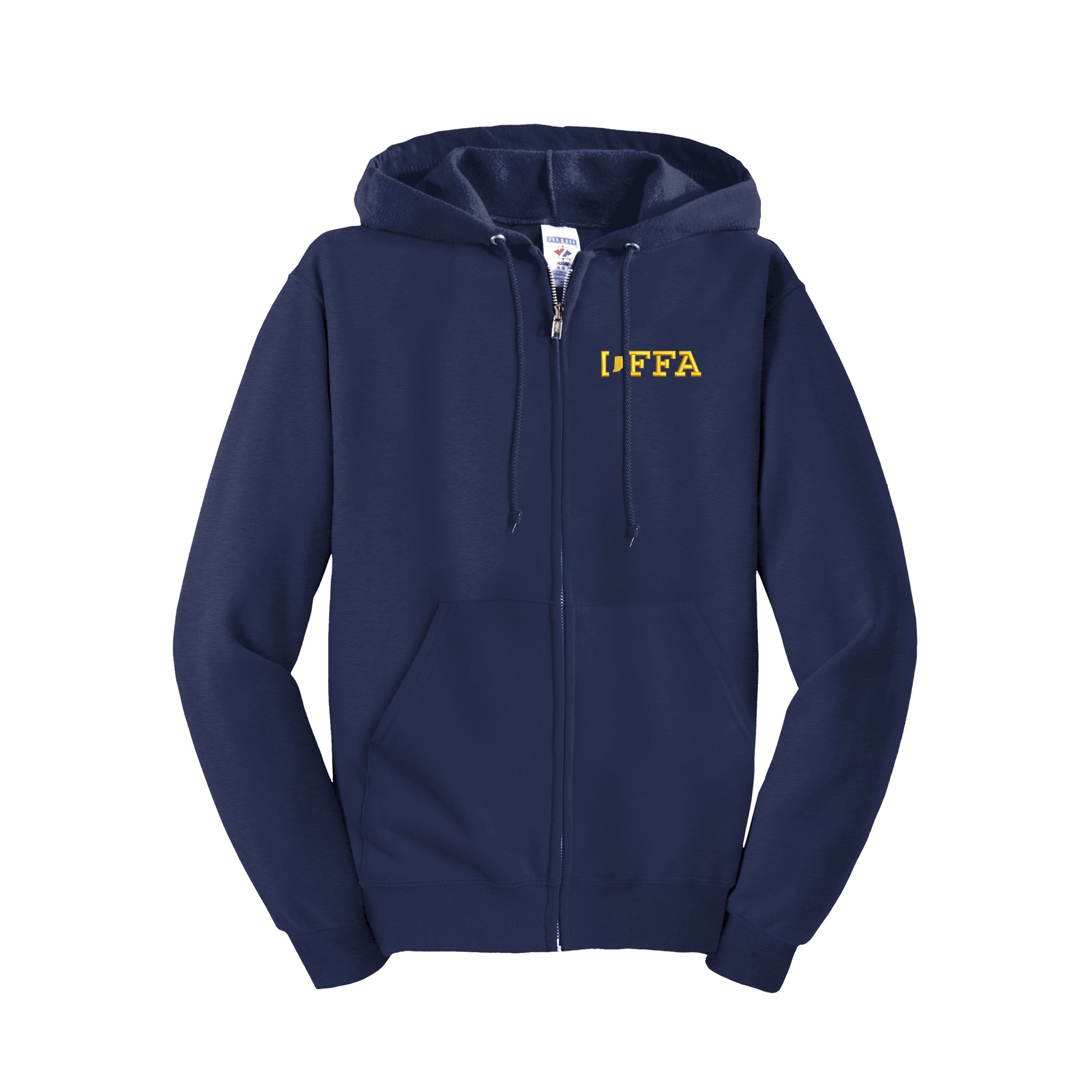 Classic Zip Up Hooded sweatshirt embroidered with FFA and Indiana state icon.