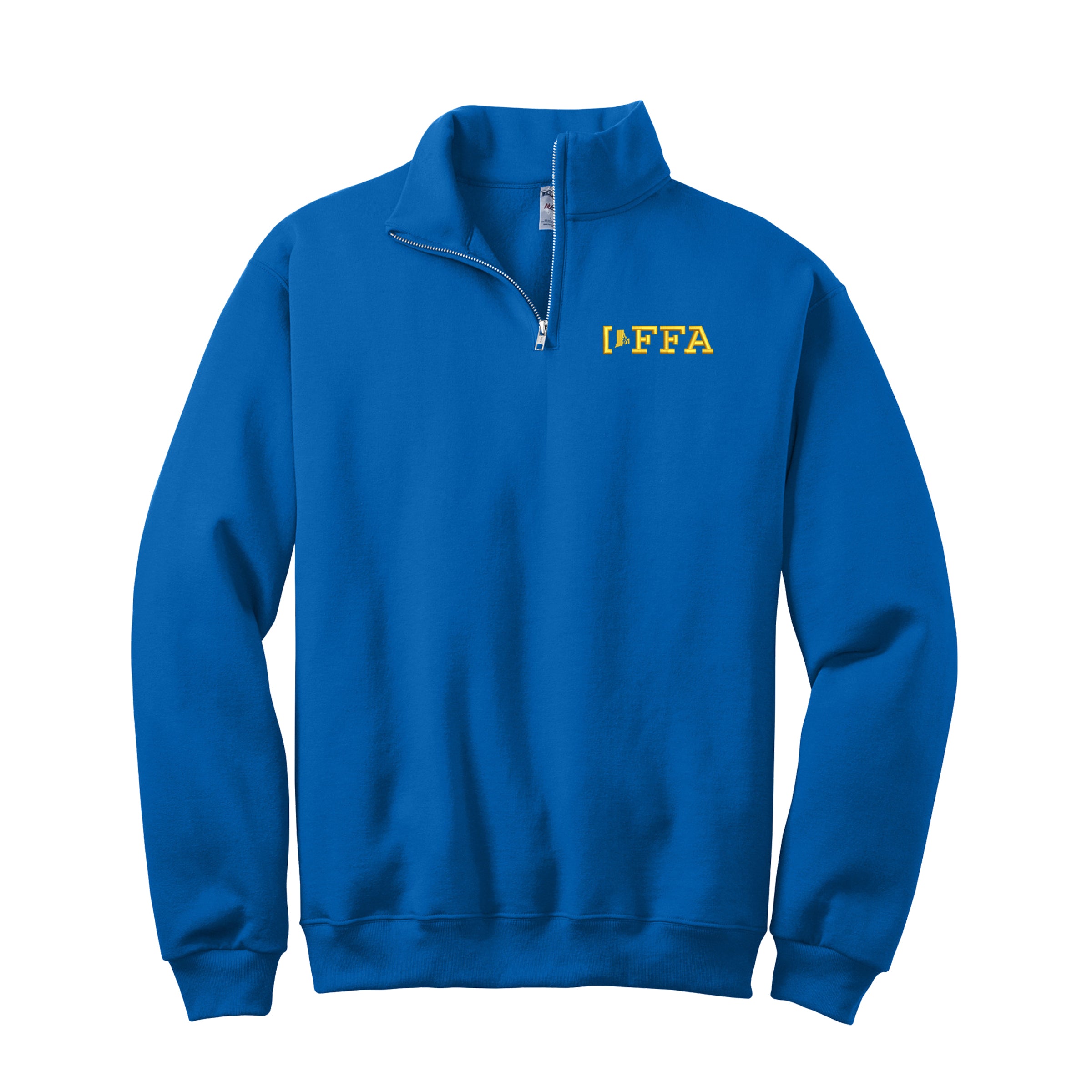 Classic quarter zip sweatshirt embroidered with FFA Rhode Island State Icon Logo