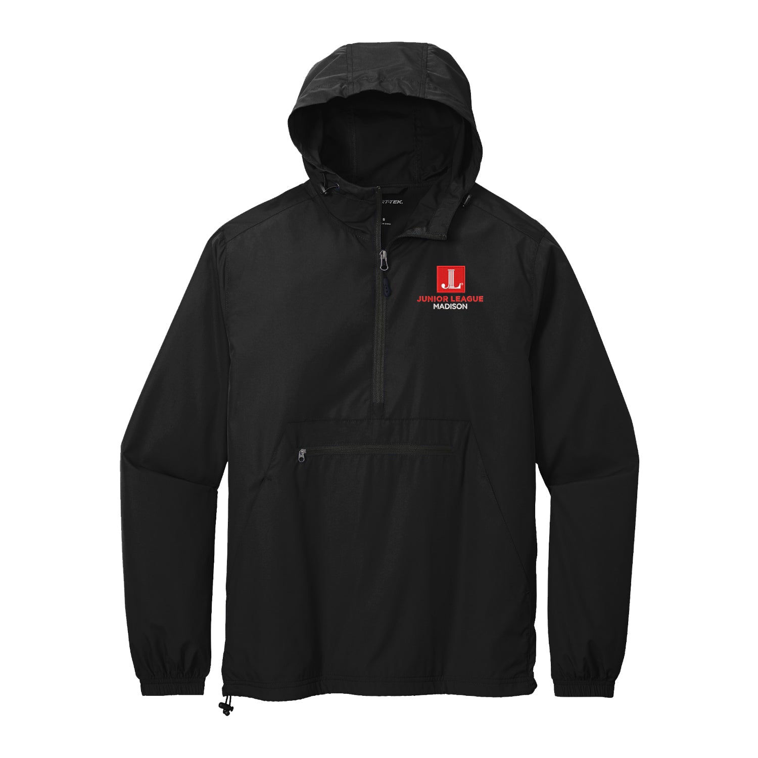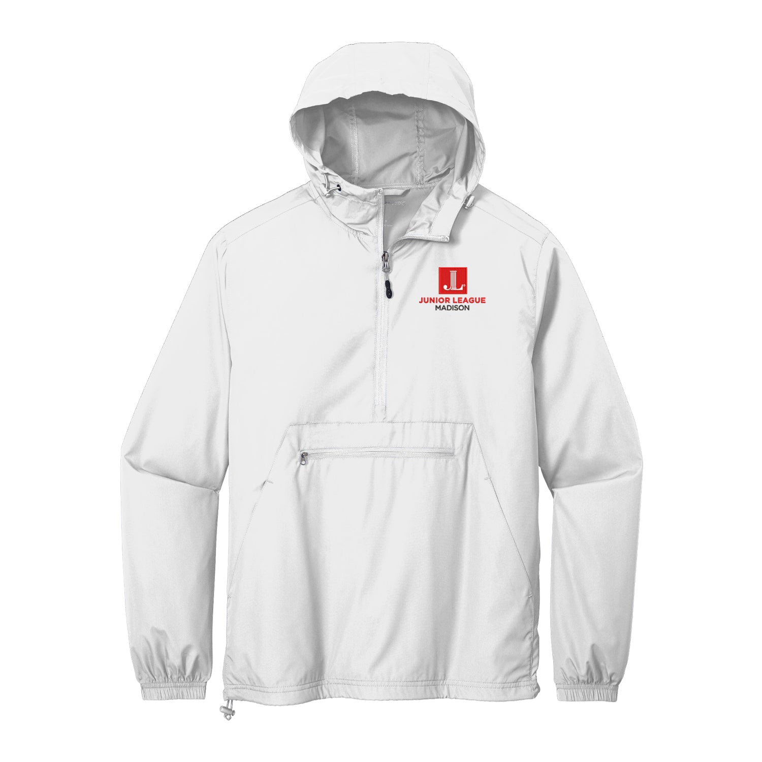 Lightweight, packable, pullover windbreaker embroidered with the Junior League of Madison Logo. This weather-fighting essential packs into its own front pocket—making it easy to throw it into a gym duffel. Unisex Sizing XS-4XL. Available in red, black, or white. Contact us for 5x and 6x size options. All custom league items are nonreturnable/nonrefundable.